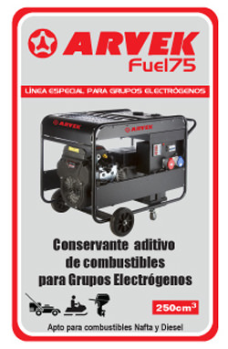 La línea especial de lubricantes para grupos electrógenos " ARVEK FUEL 75" es un coservante aditivo de combustibles, apto tanto para nafta o diesel.