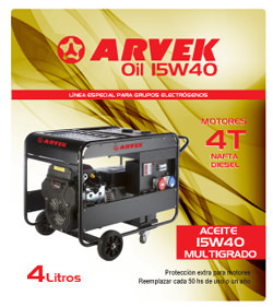 La línea especial de lubricantes para grupos electrógenos "ARVEK OIL15W40"es un lubricante mineral, multigrado, especialmente diseñado para motores de aspiración natural, a gasolina, gas, o gasoil, utilizados en grupos electrógenos.